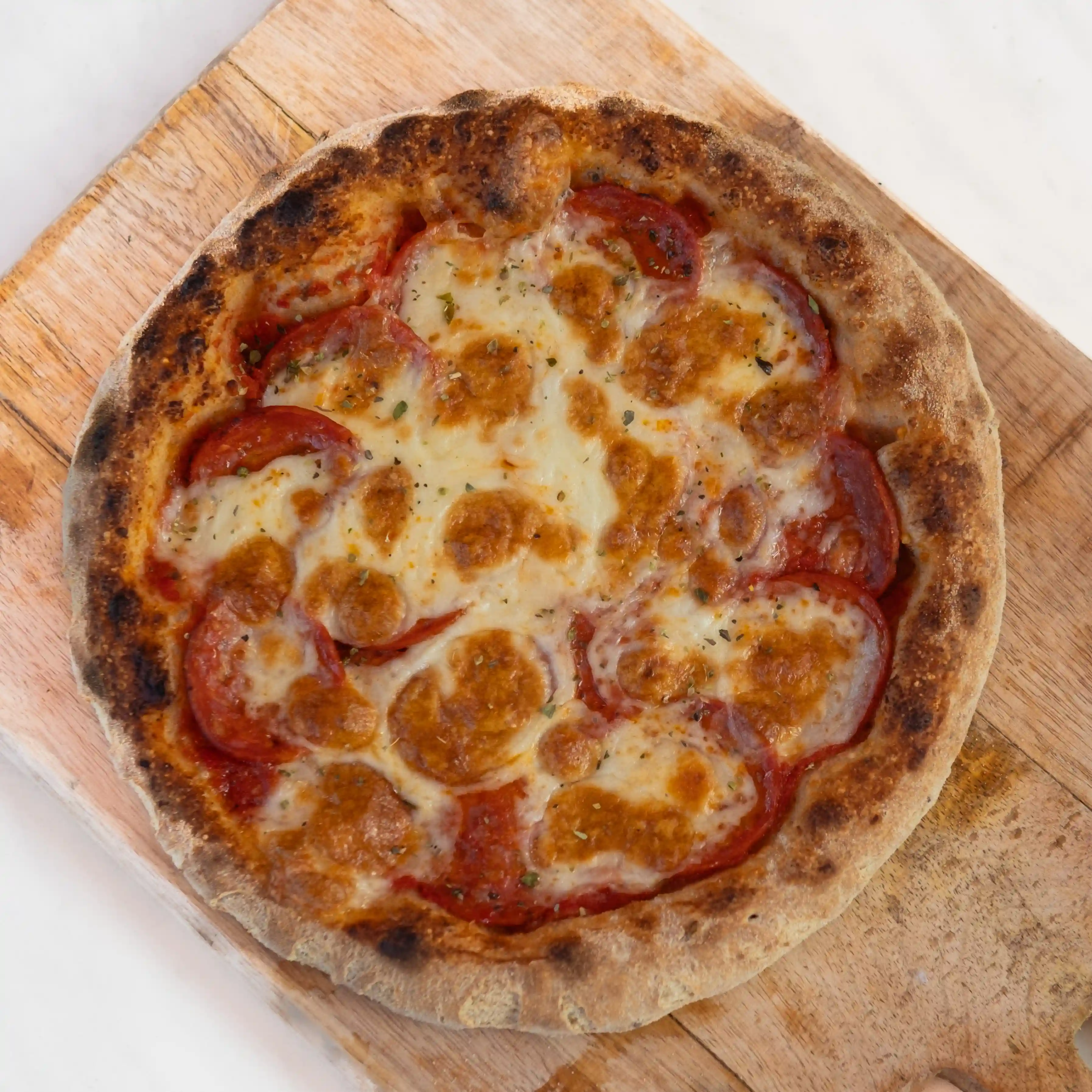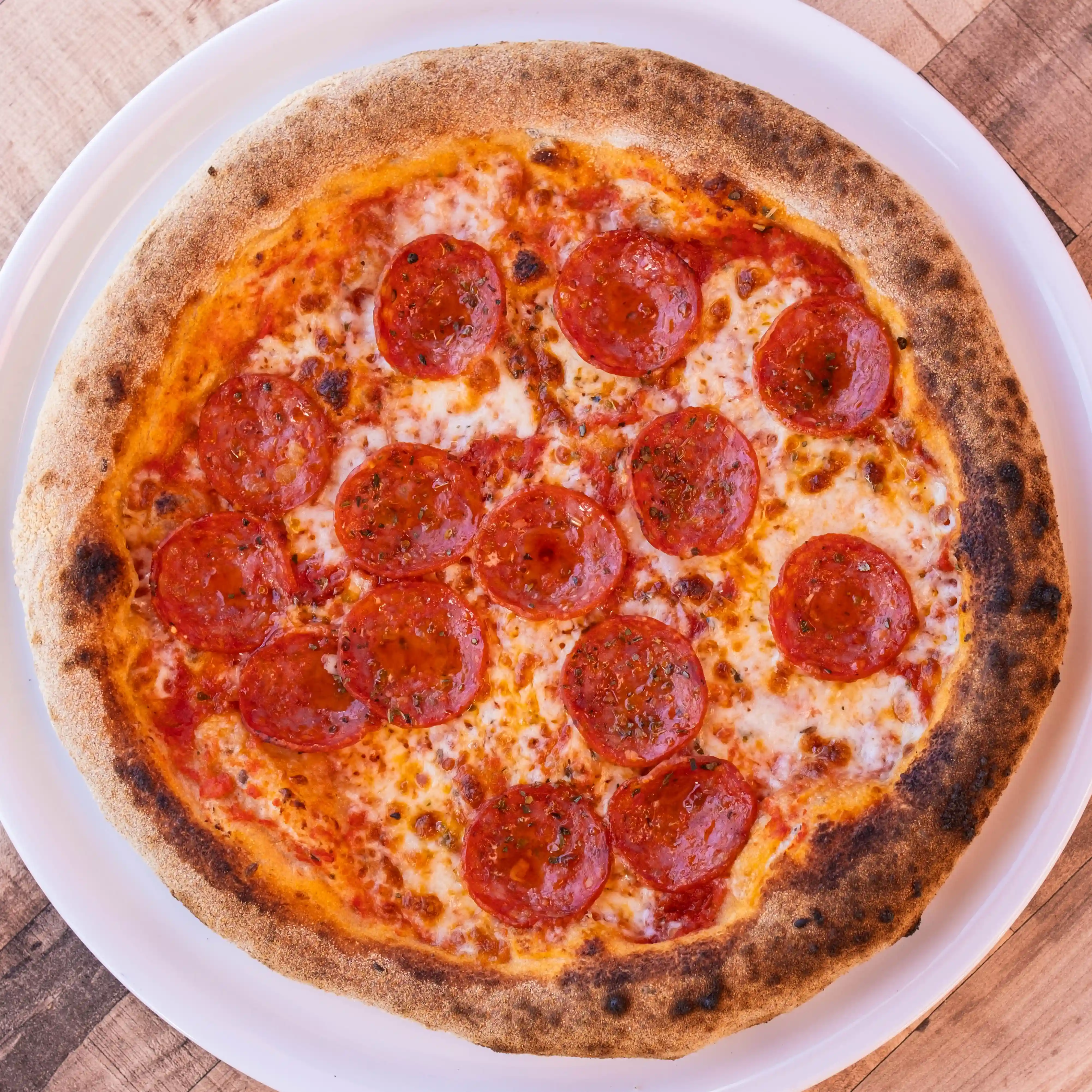 Tomato sauce, pepperoni, mozzarella fior di latte, oregano