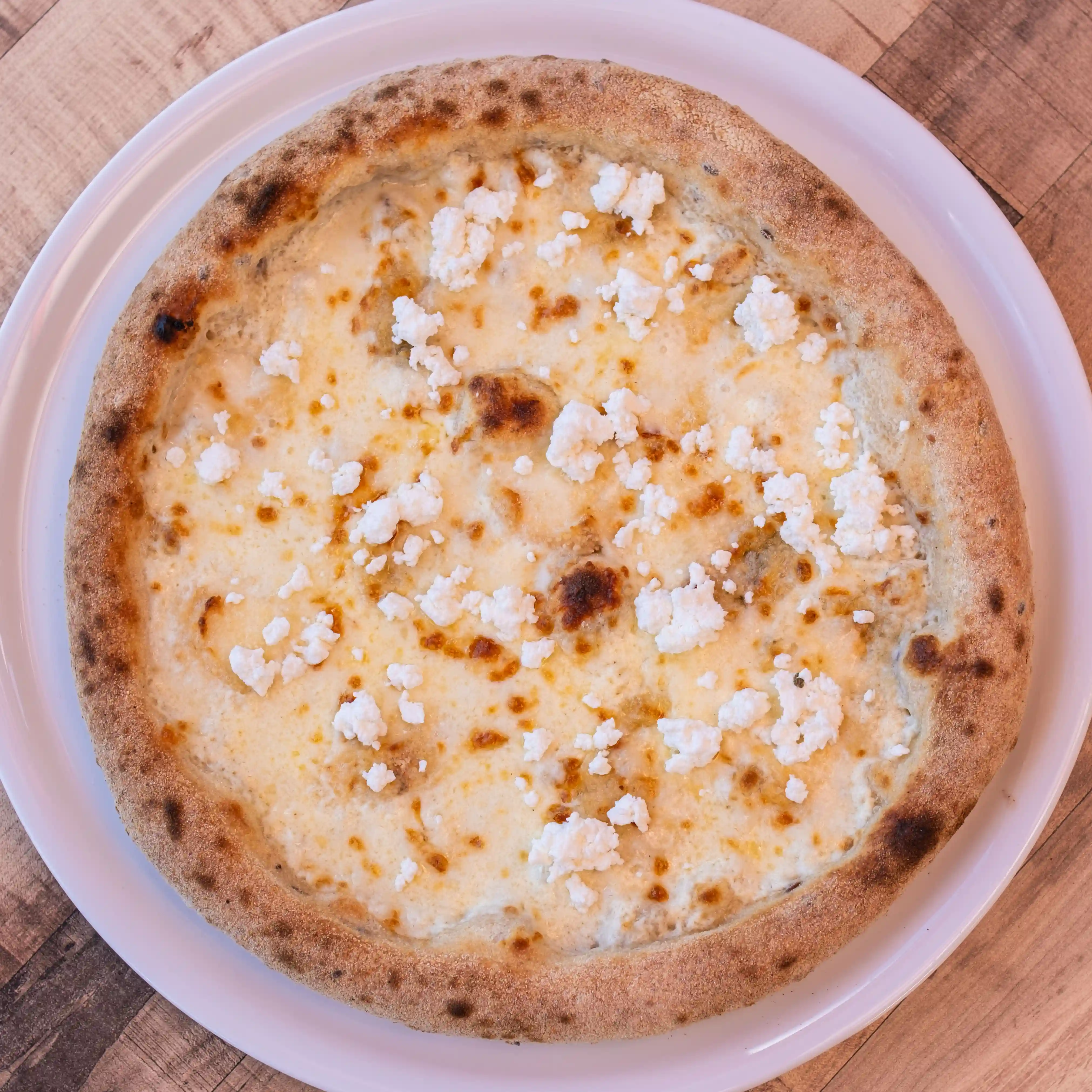 Crème fraîche, Mozzarella, Gorgonzola, Taleggio, After cooking: Crumbled goat cheese