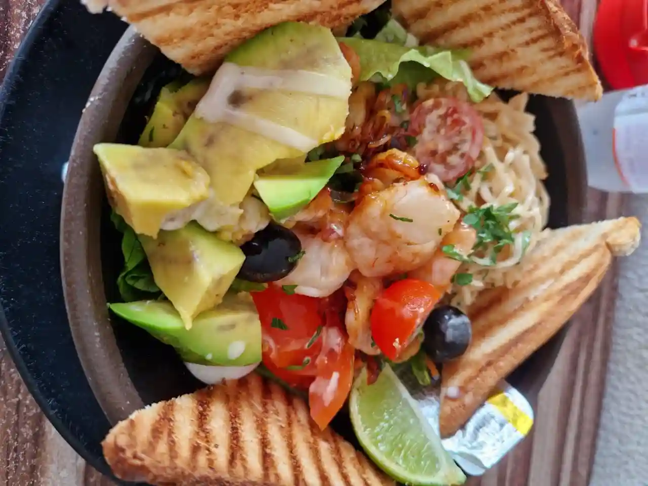 Salad, Raw Boiled Egg, Raw ham, Avocado, Shrimp