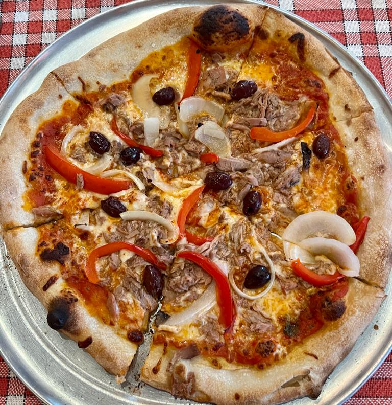 Sauce Marinara, Mozzarella, Thon, Poivron, Oignons, Olives