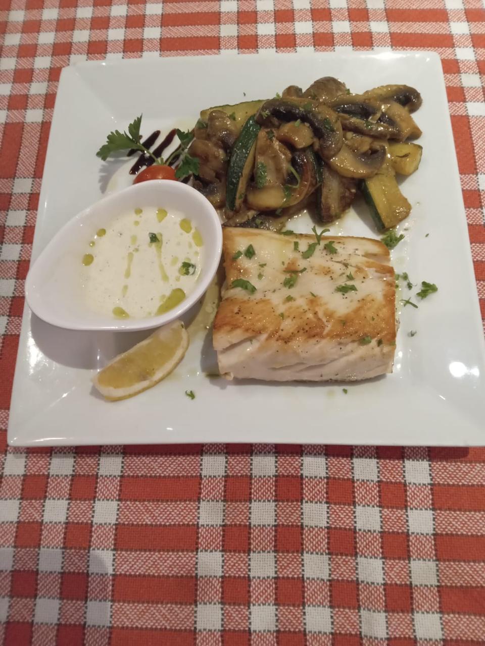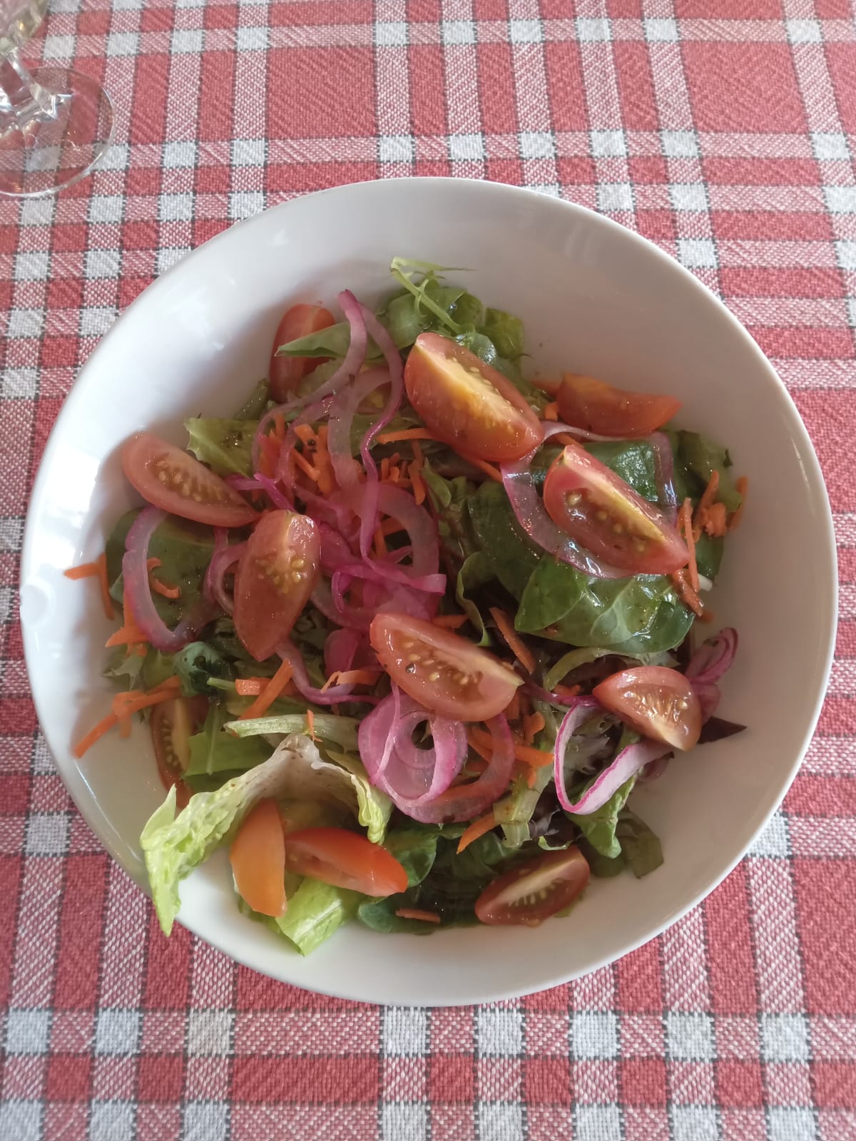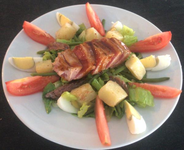 Salade verte, Tomates, Pomme de terre, Anchois, Oeuf dur, Thon Frais Grillé avec une sauce teriyaki