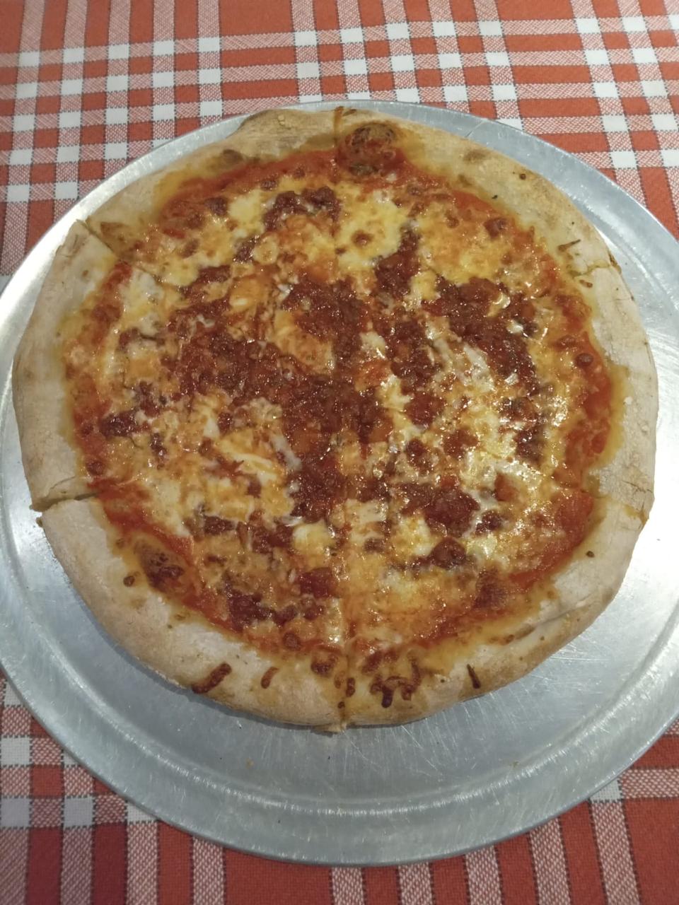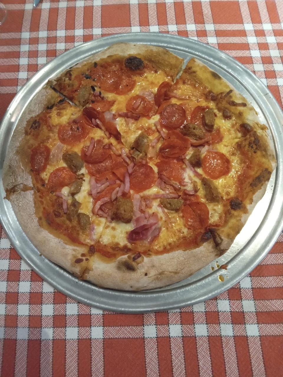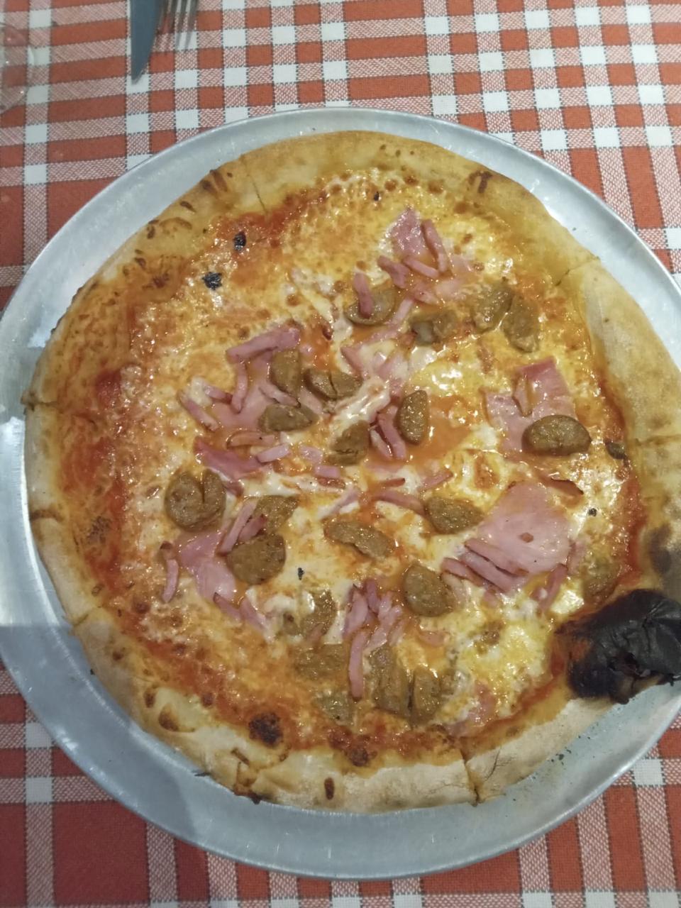 Sauce marinara, Mozzarella, Jambon, Lardons, Saucisse italienne épicée